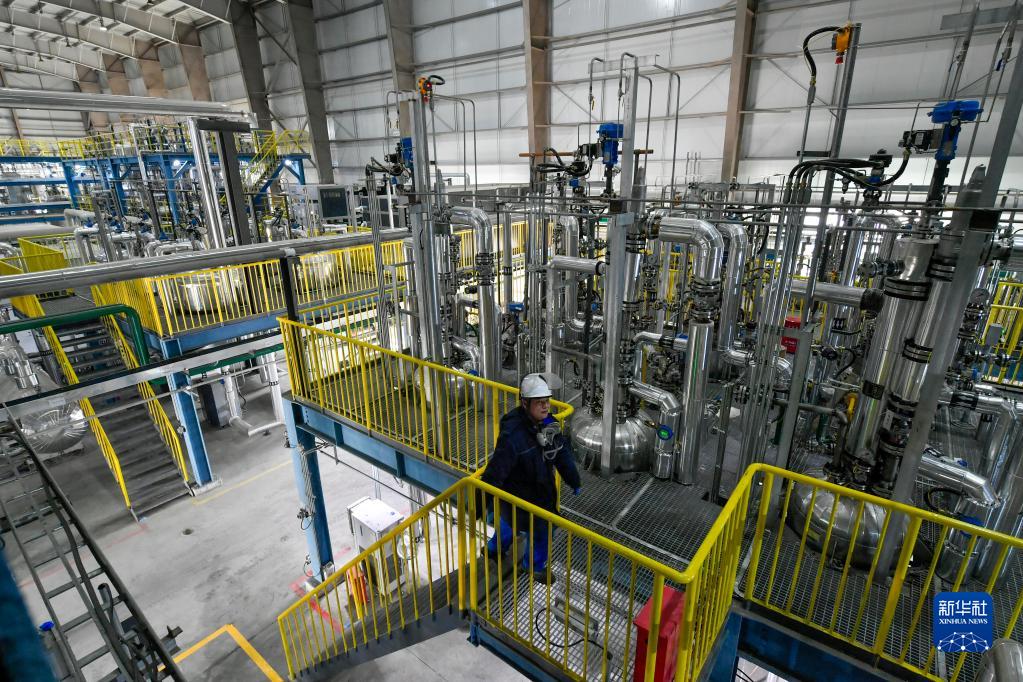 2月8日,工人在天津長蘆化工新材料公司生產(chǎn)車間巡視。