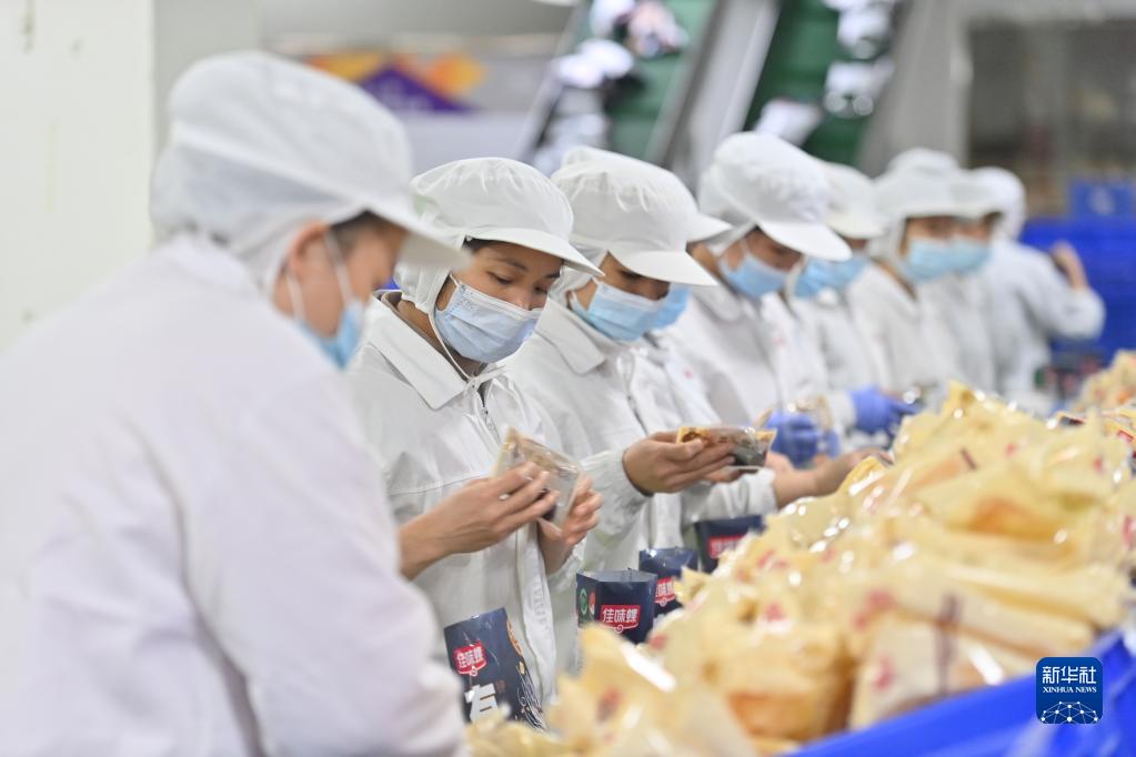 2月8日,工人在柳州螺螄粉生產集聚區一生產車間包裝產品。