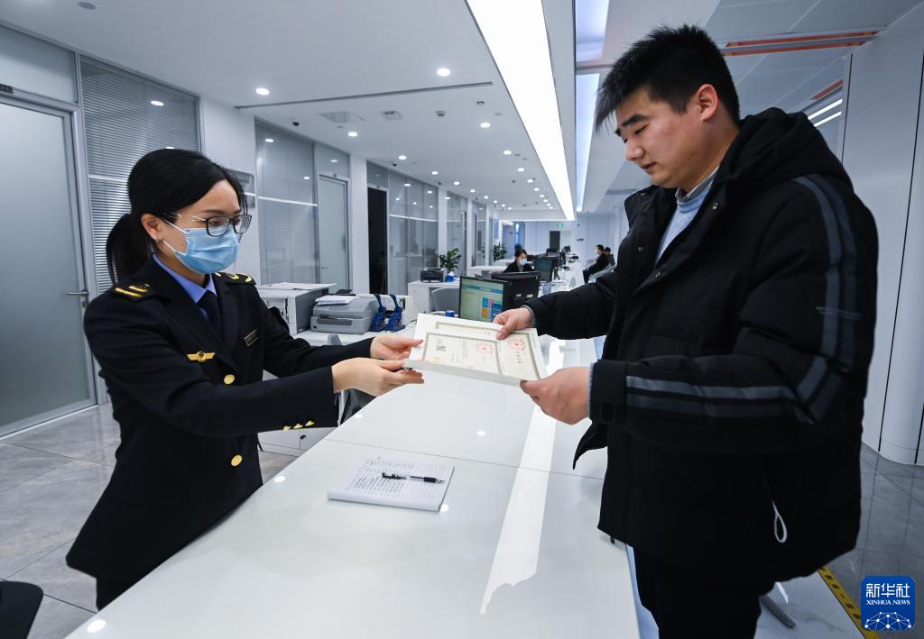2月8日,企業負責人在中小微企業一站式服務平臺領取營業執照。