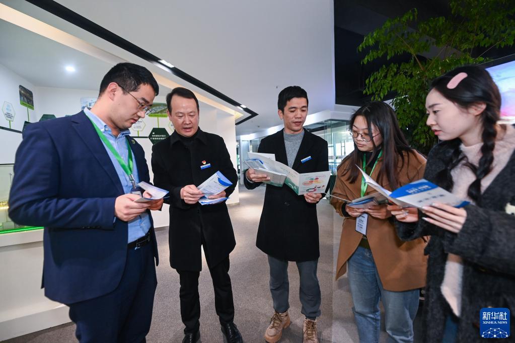 2月8日,湖州市吳興區中小微企業一站式服務平臺的值班代辦員(左二、左三)來到一家高新企業,開展“上門辦”服務,給企業員工提供人才補貼政策的解讀及登記辦理。