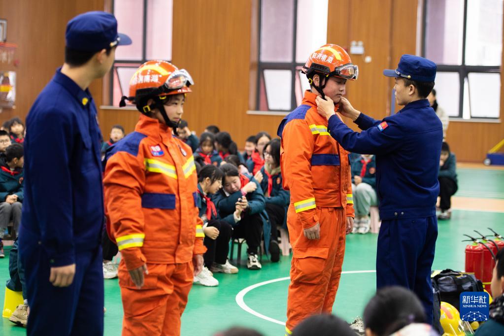 當日,湖南省常德市消防救援支隊在常德市武陵區第一小學舉行“開學第一課 消防安全進校園”活動。消防員為學生講解日常防火常識,組織滅火器使用、高空救援等演練,強化學生的安全保護意識。