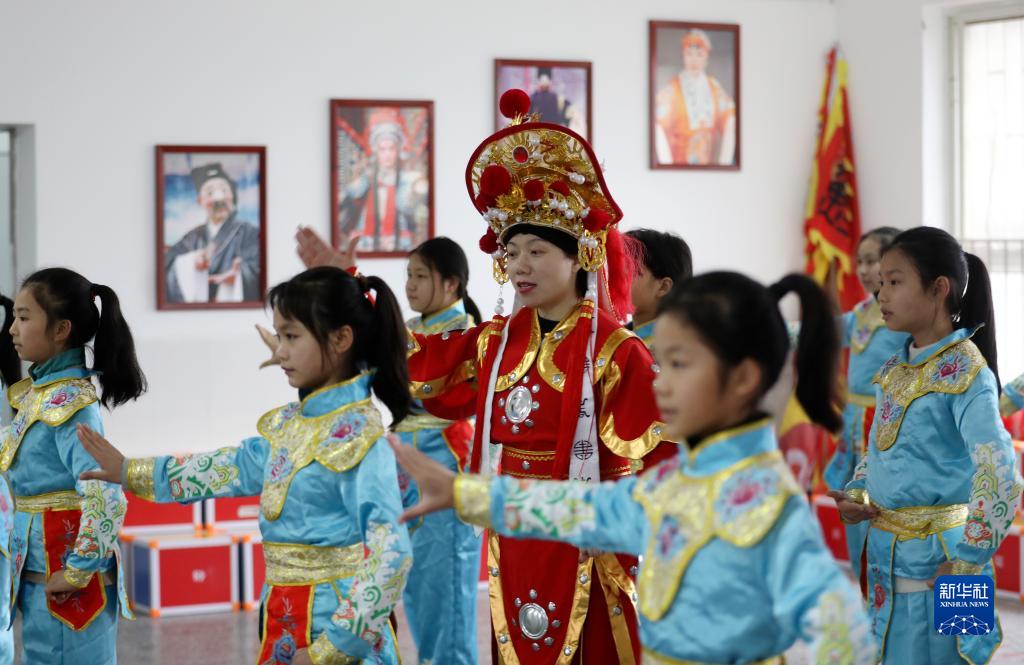 2月7日,在湖南省資興市鯉魚江完全小學(xué),戲曲老師指導(dǎo)學(xué)生學(xué)習(xí)戲曲表演基本動作。