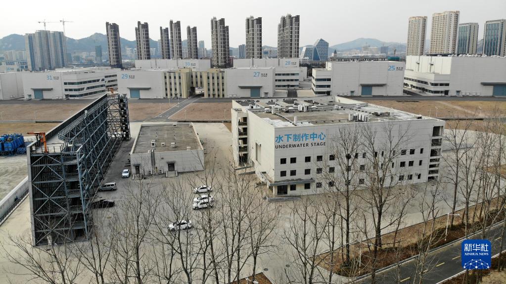 青島東方影都影視產業園內的水下制作中心(2月8日攝,無人機照片)。