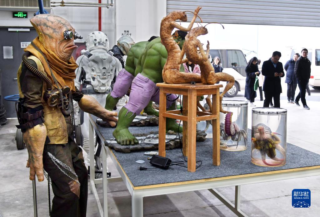 2月8日,訪客在青島東方影都影視產業園置景車間內參觀。
