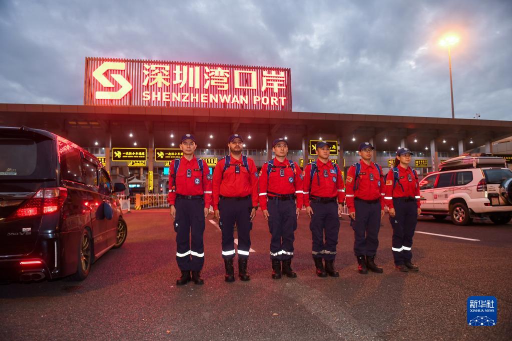 2月8日,深圳公益救援隊6名先遣隊隊員在深圳灣口岸集合準備出發。