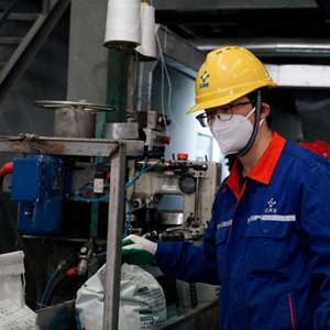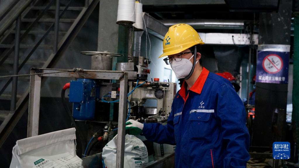 2月8日,在青海云天化國際化肥有限公司,工作人員在檢查產品質量。