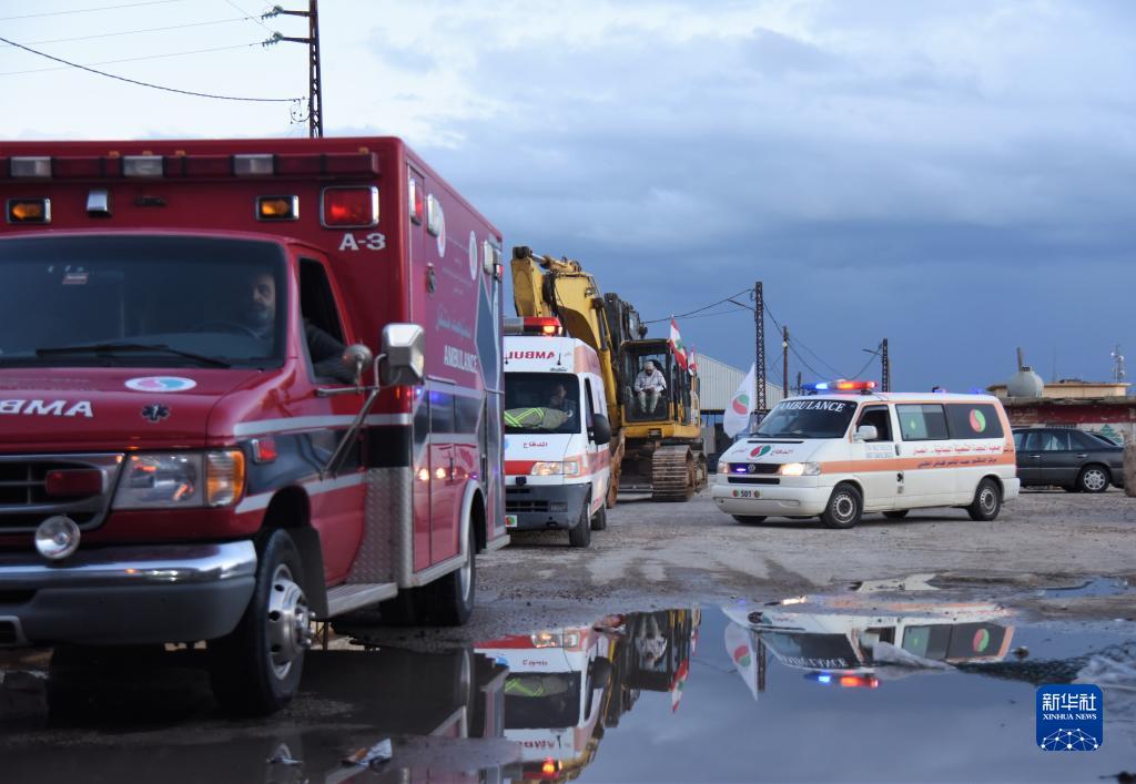 2月8日,黎巴嫩救援車輛準備通過邊境的阿里達口岸進入敘利亞。
