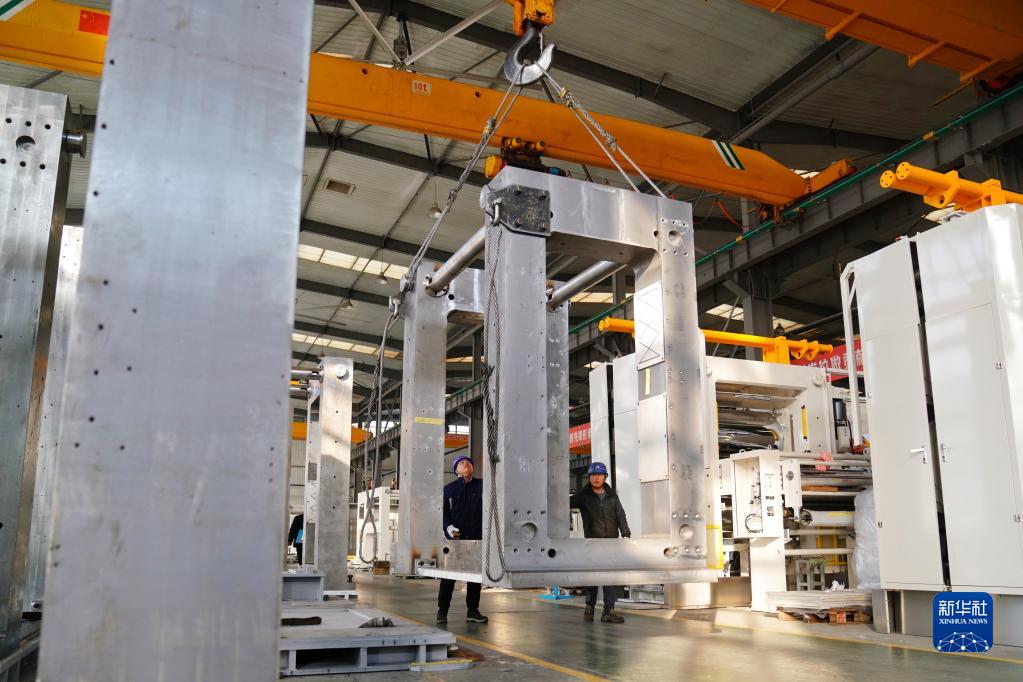 2月6日,在位于河北邢臺經(jīng)濟開發(fā)區(qū)的邢臺納科諾爾精軋科技股份有限公司,工人在生產(chǎn)車間吊裝配件。