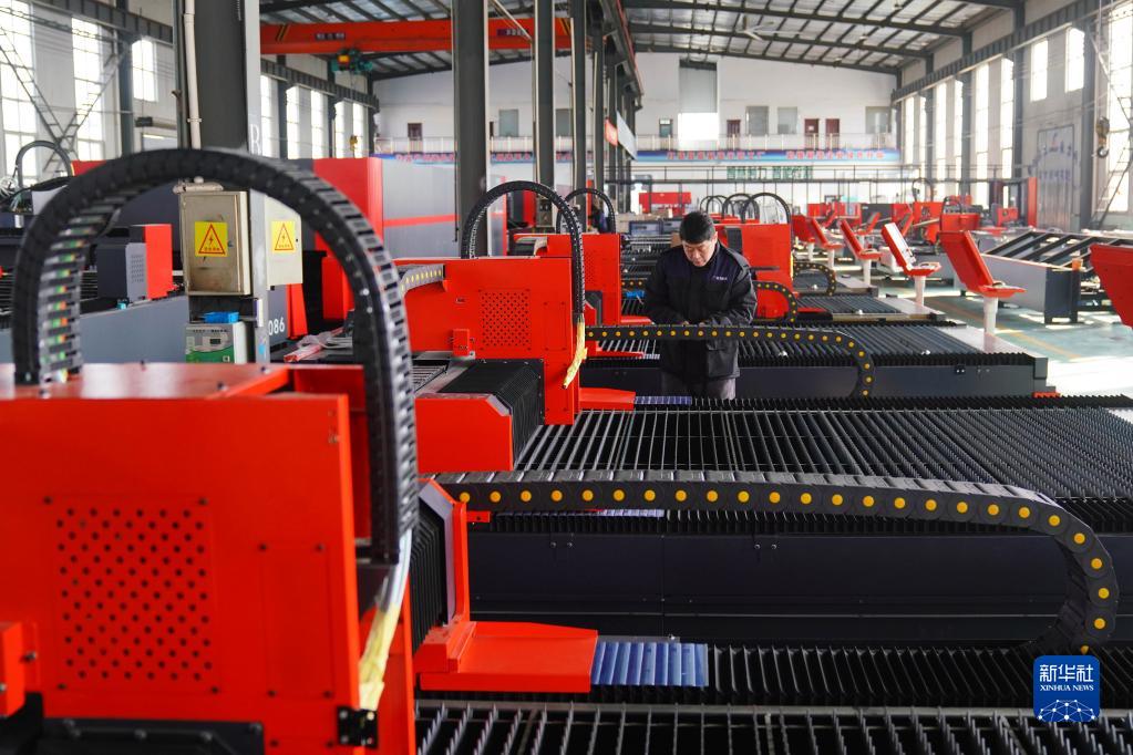 2月6日,在位于河北邢臺經(jīng)濟(jì)開發(fā)區(qū)的河北創(chuàng)力機(jī)電科技有限公司,工人在查看激光切割機(jī)產(chǎn)品情況。