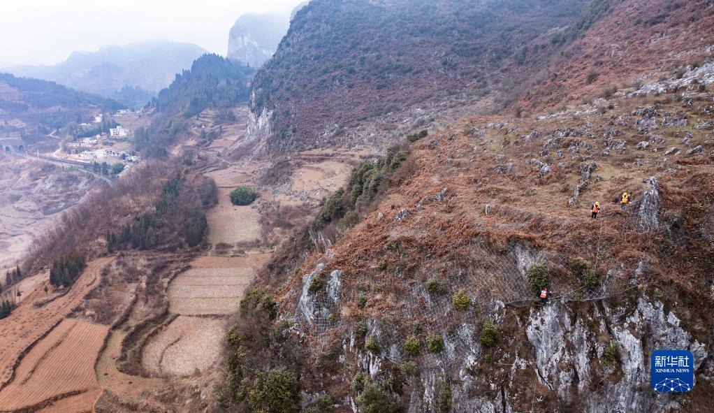 滬昆鐵路貴州段地勢險峻,途經的烏蒙山脈多屬喀斯特地貌,鐵路沿線高山林立,溝壑縱橫,不時有落石崩塌掉落。為確保列車安全運行,中國鐵路成都局集團公司六盤水工電段的職工登山越嶺、搜山掃危,在高山之上守護著穿行群山的春運列車。