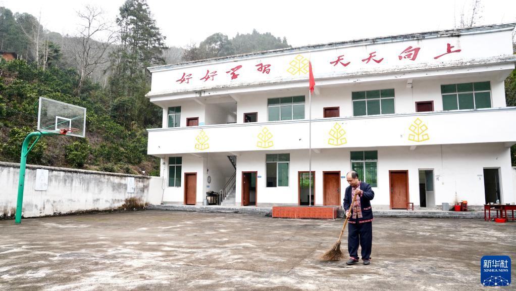 2月8日,放學后鄧煙發在校內清掃操場。