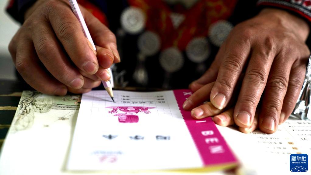 2月8日,鄧煙發(fā)在教室內指導學生王妍歡寫字。