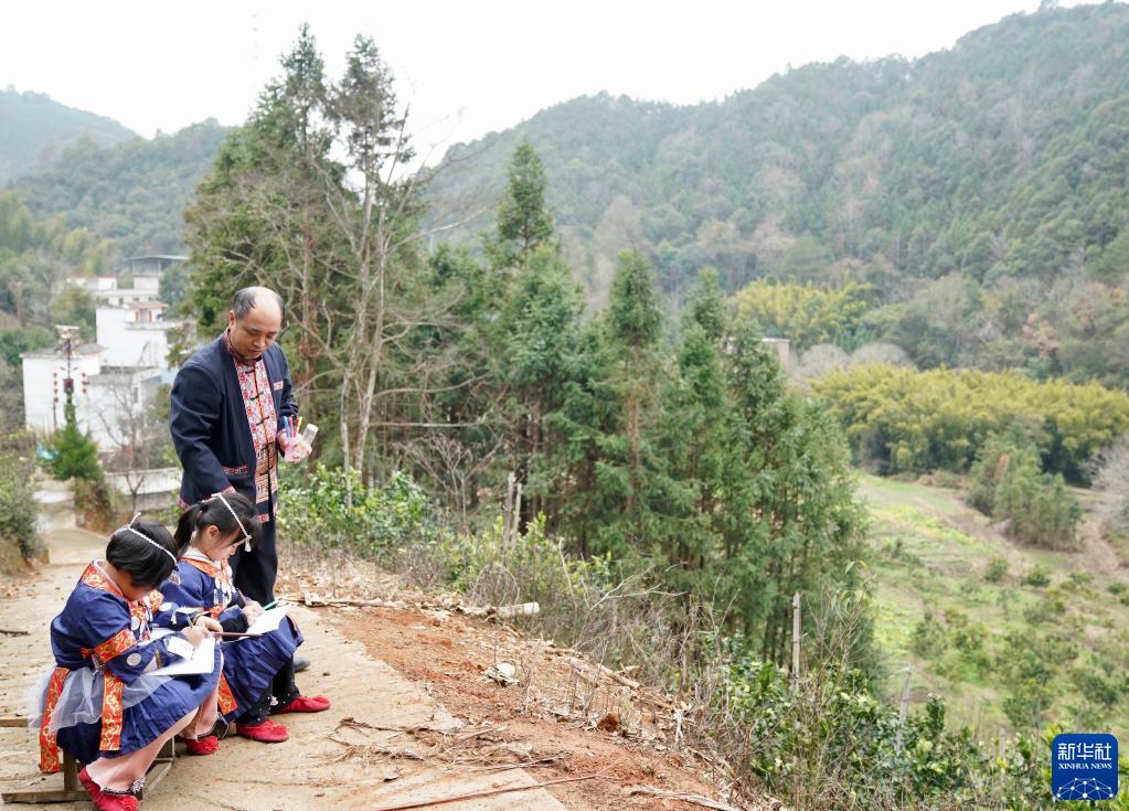 2月8日,鄧煙發帶學生去學校附近的山林寫生。