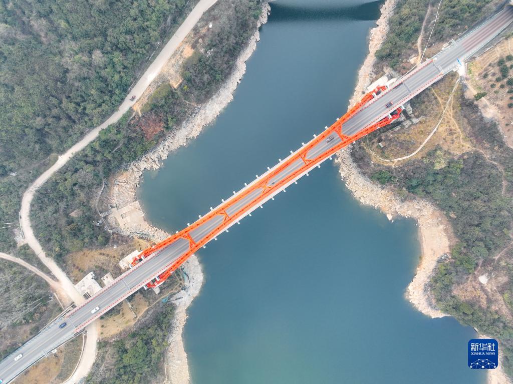 這是2月1日拍攝的貴州花魚洞大橋(無人機照片)。
