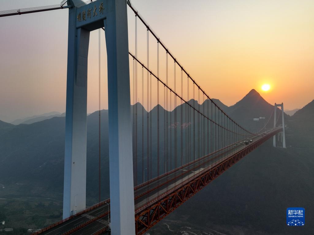 2月1日拍攝的貴州壩陵河大橋(無人機照片)。