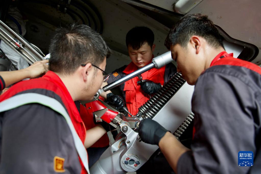 2月8日,海航技術旗下大新華飛機維修服務有限公司的機務維修人員對進境飛機進行檢修。