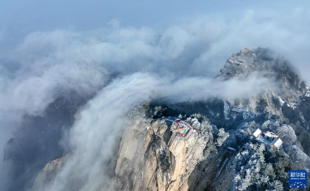 當日,雪后的西岳華山風景區(qū)云霧繚繞,猶如人間仙境。