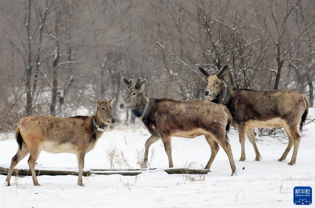 當(dāng)日,內(nèi)蒙古大青山國家級(jí)自然保護(hù)區(qū)迎來降雪,放歸于此的麋鹿在雪地上奔跑、嬉戲,構(gòu)成一幅別樣的生態(tài)畫卷。