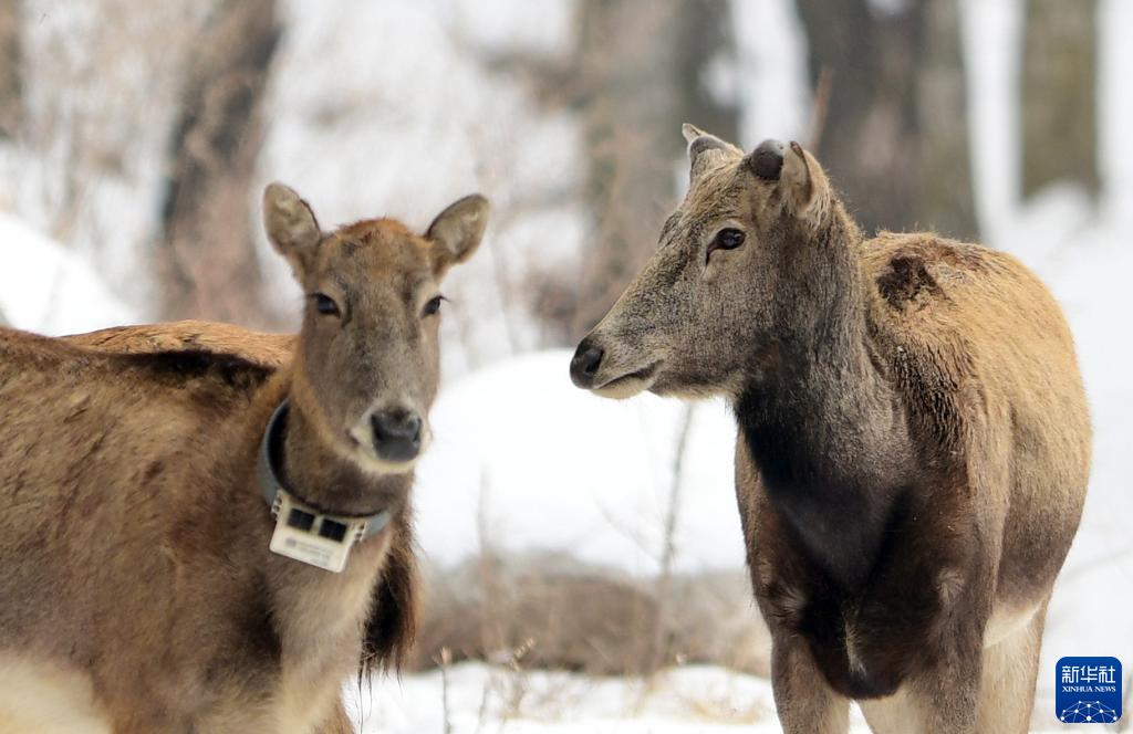 2月9日在內(nèi)蒙古大青山國家級自然保護(hù)區(qū)拍攝的麋鹿。