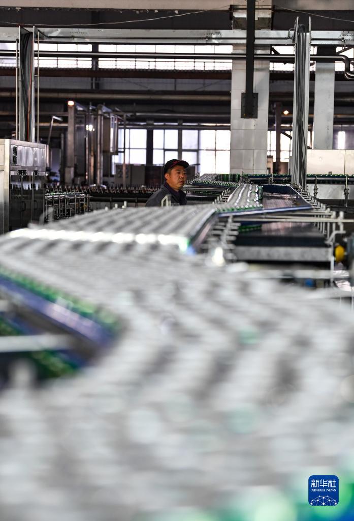 2月9日,工人在拉薩啤酒新聽裝生產(chǎn)線上工作。