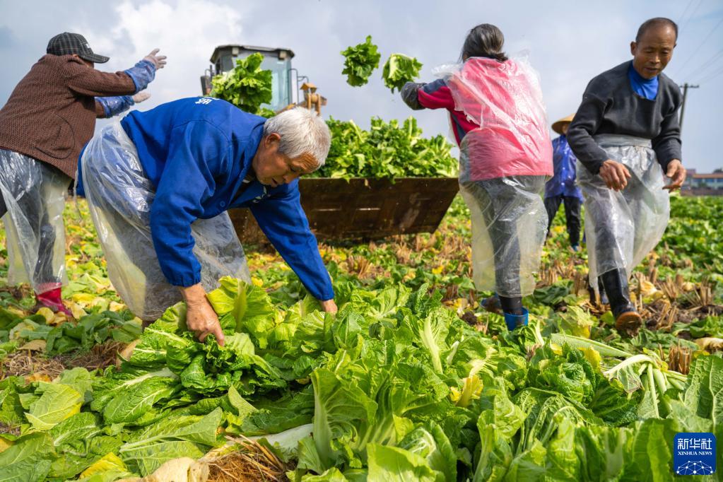 2月9日,在四川省眉山市彭山區(qū)公義鎮(zhèn)欣榮村,村民們?cè)诓墒帐卟恕?/p>