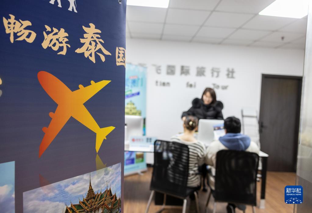 2月9日,市民在浙江省諸暨市一家旅游公司咨詢出境游的相關(guān)情況。