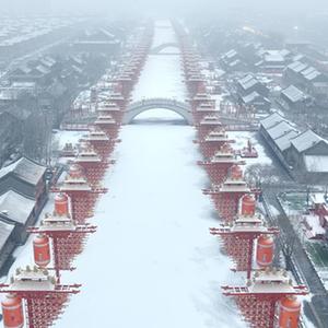 雪后的唐山市豐南區河頭老街景色(2月10日攝,無人機照片)。
