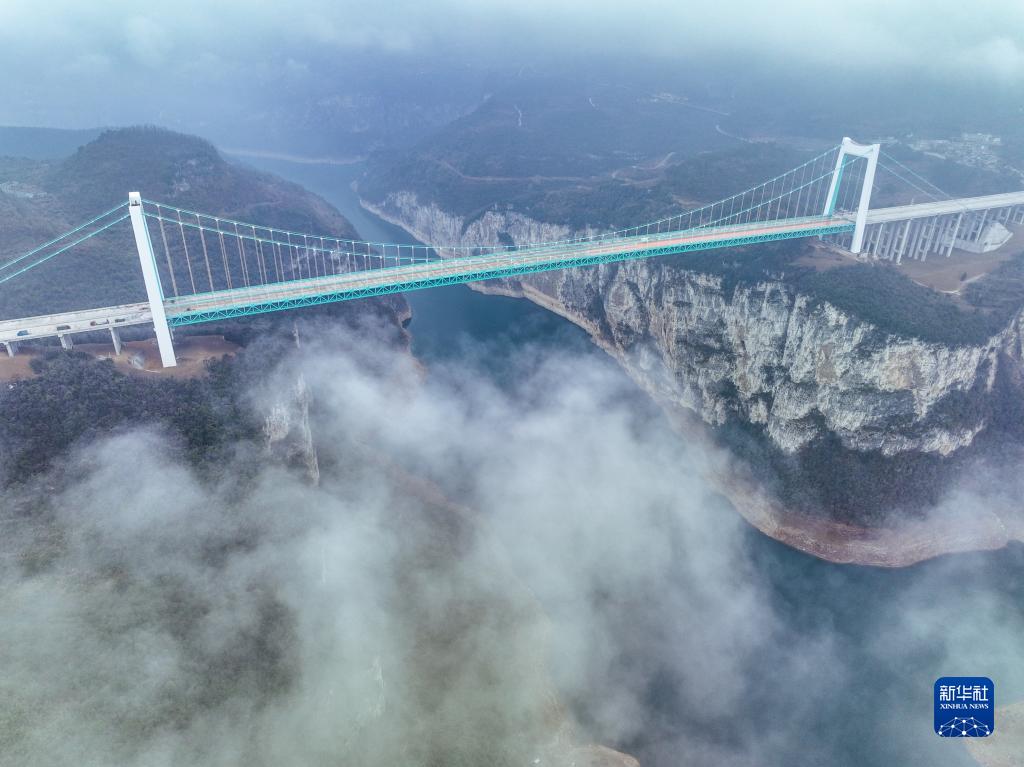 2月3日拍攝的貴州金烽烏江大橋(無人機照片)。