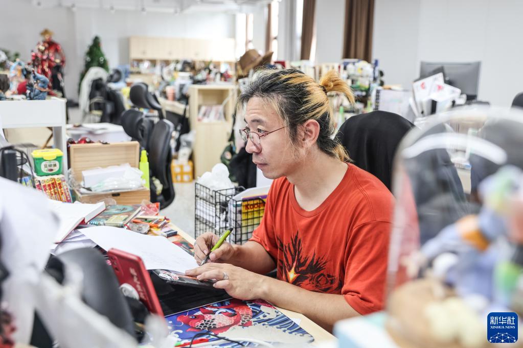2月9日,漫畫家“極樂鳥”在海口市龍橋鎮昌學村的“燚界·漫創社”創業孵化基地設計動漫作品。