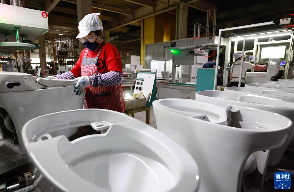 2月10日,工人在唐山市豐南區(qū)一家衛(wèi)浴企業(yè)的生產(chǎn)車間工作。