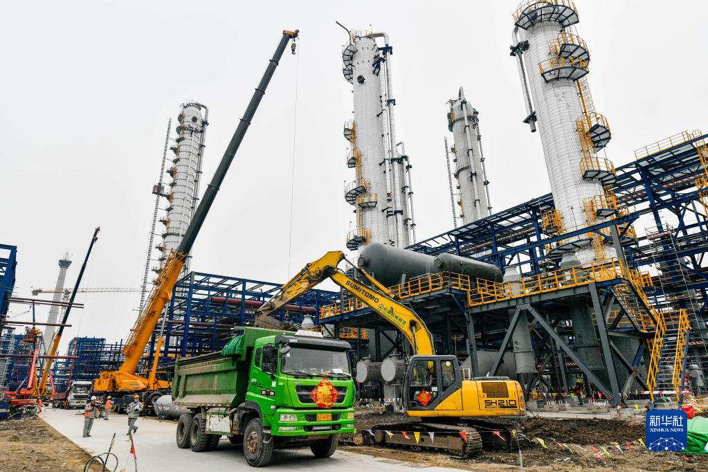 這是2月9日拍攝的天津南港乙烯項(xiàng)目建設(shè)施工現(xiàn)場。
