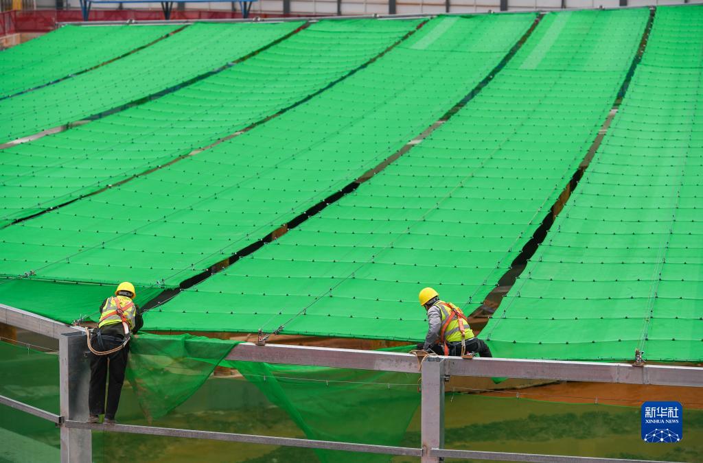 2月8日,在TCL先進半導體顯示產業總部項目上,施工人員在對“天幕”進行維保。