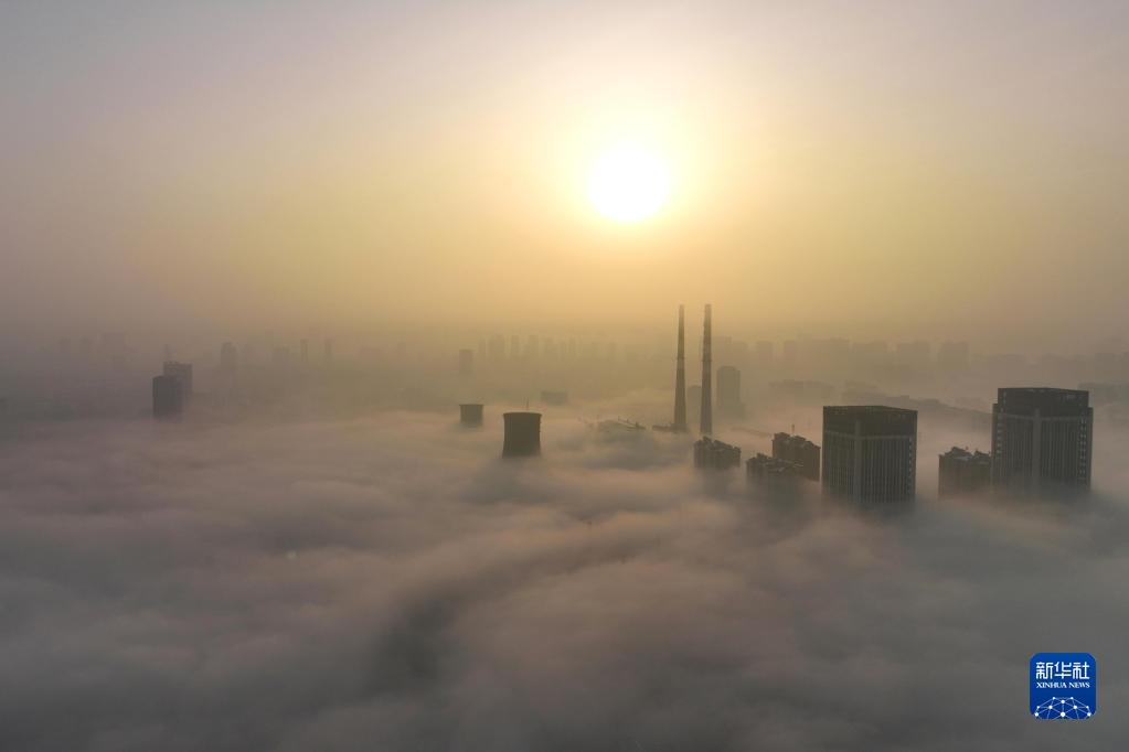 寧夏銀川出現(xiàn)平流霧景觀