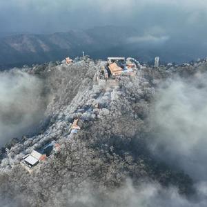 當(dāng)日,雪后的河北唐山市遷西縣出現(xiàn)云海霧凇景觀,山峰、樹木、古建筑在云霧中時隱時現(xiàn),美如畫卷。