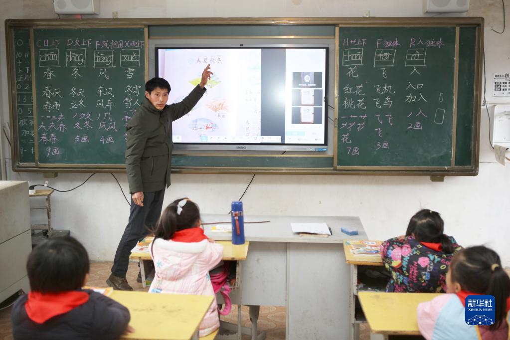 在楠木鄉官溪小學,賴小田給孩子們上語文課(2月7日攝)。