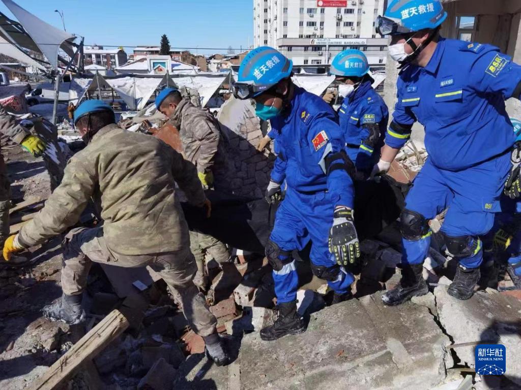 當地時間9日,100多名中國藍天救援隊隊員抵達土耳其馬拉蒂亞省開展地震救援工作。