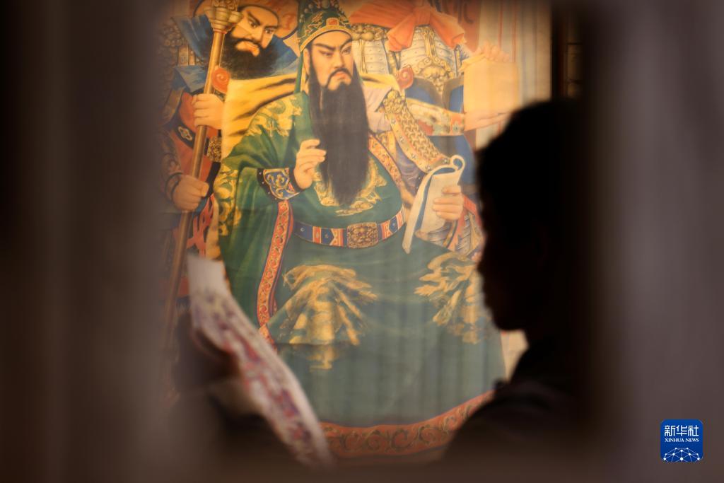 2月10日,在童壽記木版年畫工作室,童敏在研究年畫創(chuàng)作工藝。