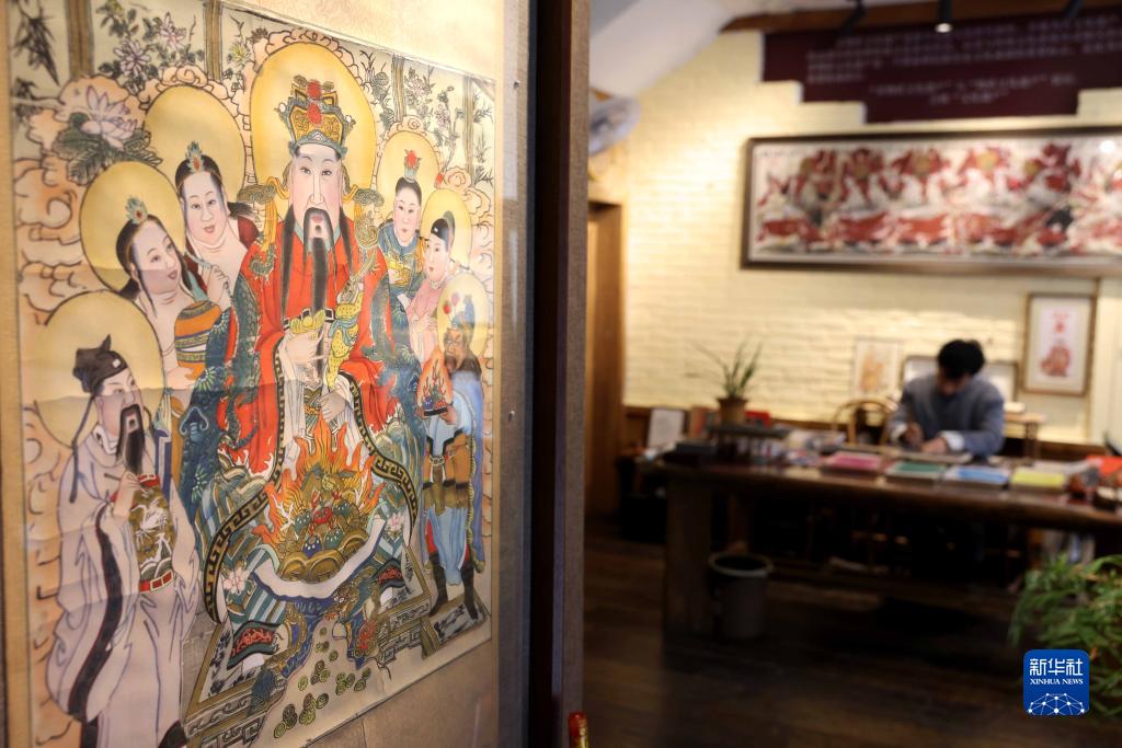 2月10日,在童壽記木版年畫工作室,童敏在進行年畫刻版。