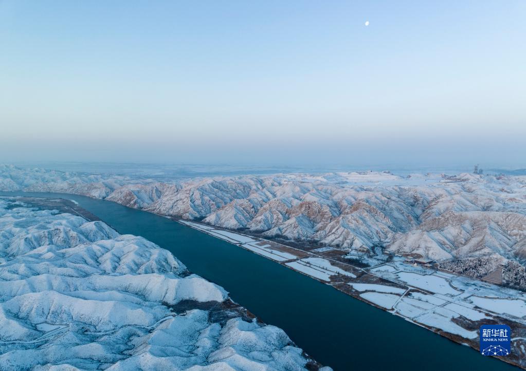 大雪過后,寧夏青銅峽黃河大峽谷銀裝素裹,黃河從峽谷間流過,美如畫卷。新華社發(祁瀛濤攝)