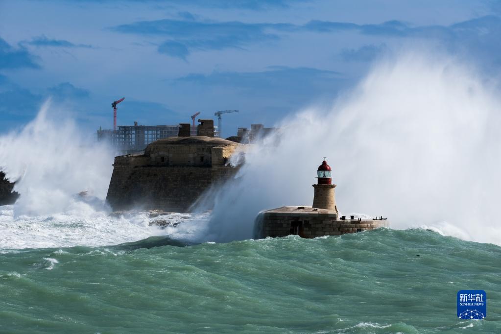 2月10日,在馬耳他瓦萊塔,大浪拍打海岸。