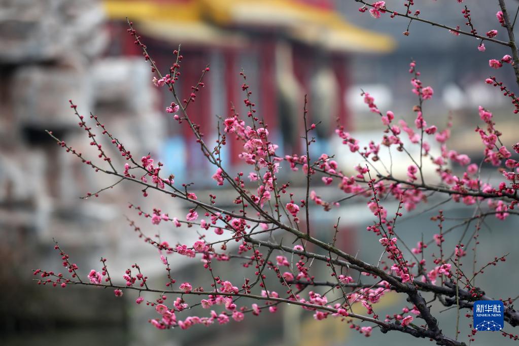 這是2月10日在江蘇揚州瘦西湖風景區拍攝的梅花。
