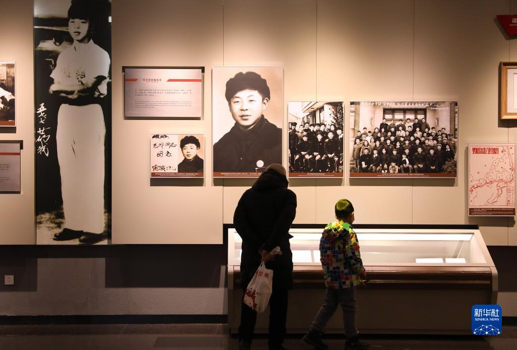 2月10日,小朋友跟隨家長在雷鋒紀念館里參觀。