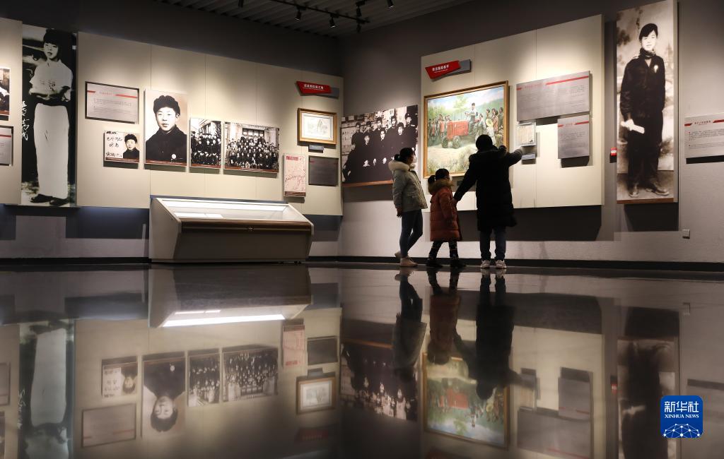 2月10日,小朋友跟隨家長在雷鋒紀念館里參觀。