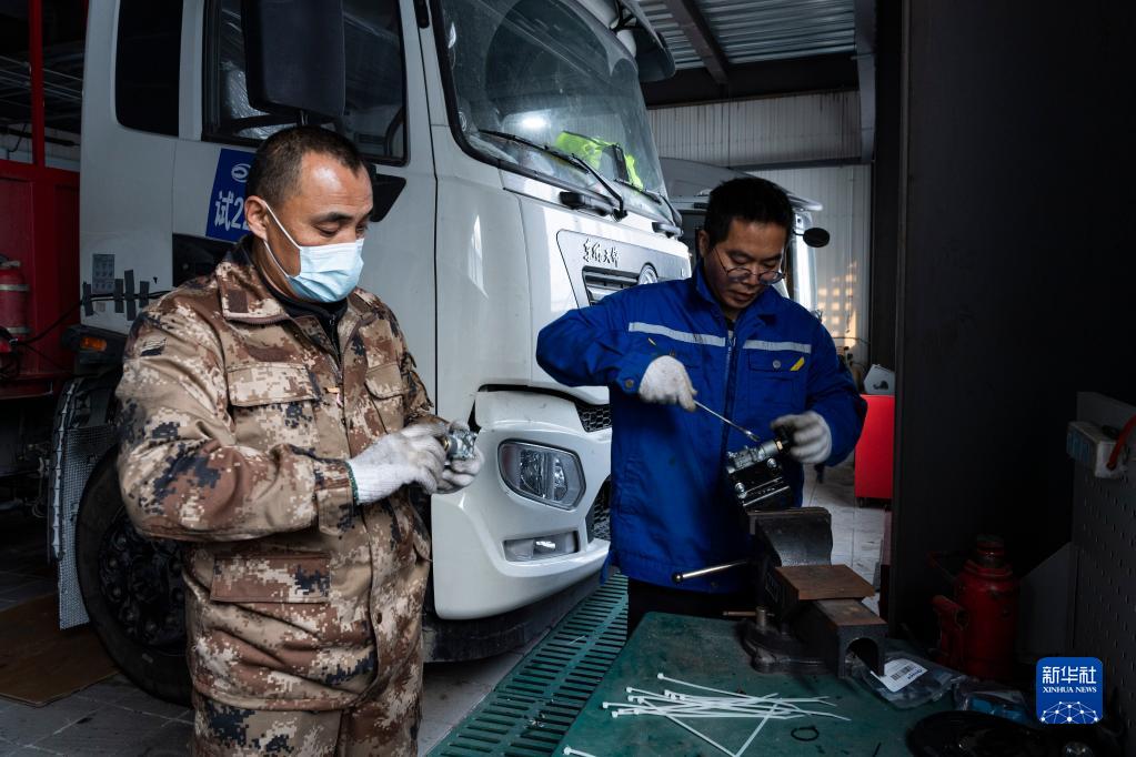 2月10日,在黑河市一車企檢測車間,工作人員對試驗車輛進行維修養護。