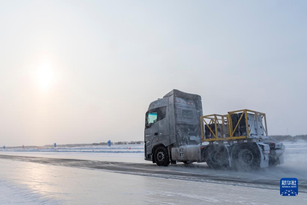 2月10日,在黑河小烏斯力測(cè)試基地,車輛進(jìn)行寒區(qū)試驗(yàn)。