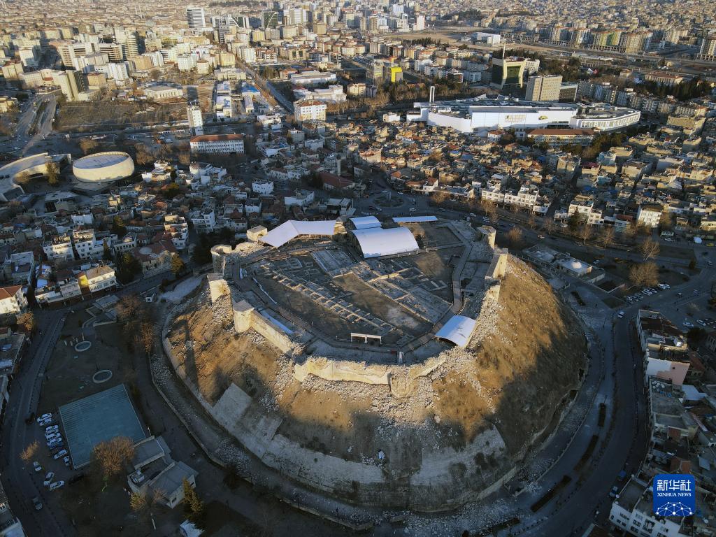 這是2月10日用無人機航拍的土耳其加濟安泰普古堡。