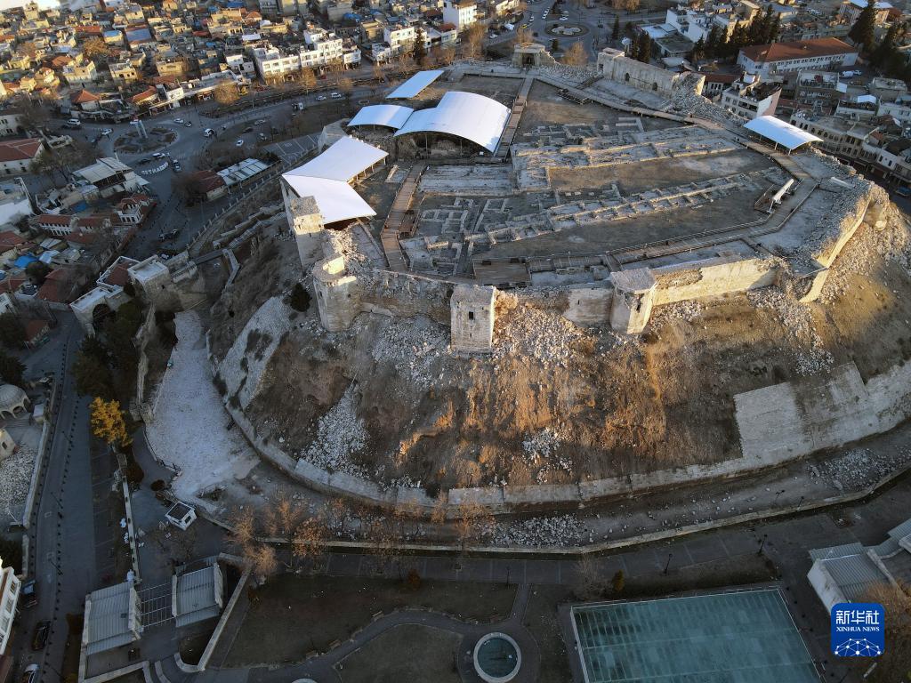 這是2月10日用無人機航拍的土耳其加濟安泰普古堡。