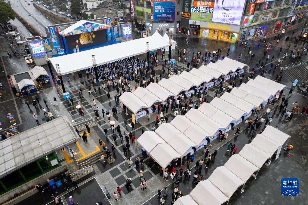這是位于長沙市天心區黃興南路步行街的招聘活動現場(2月11日攝,無人機照片)。
