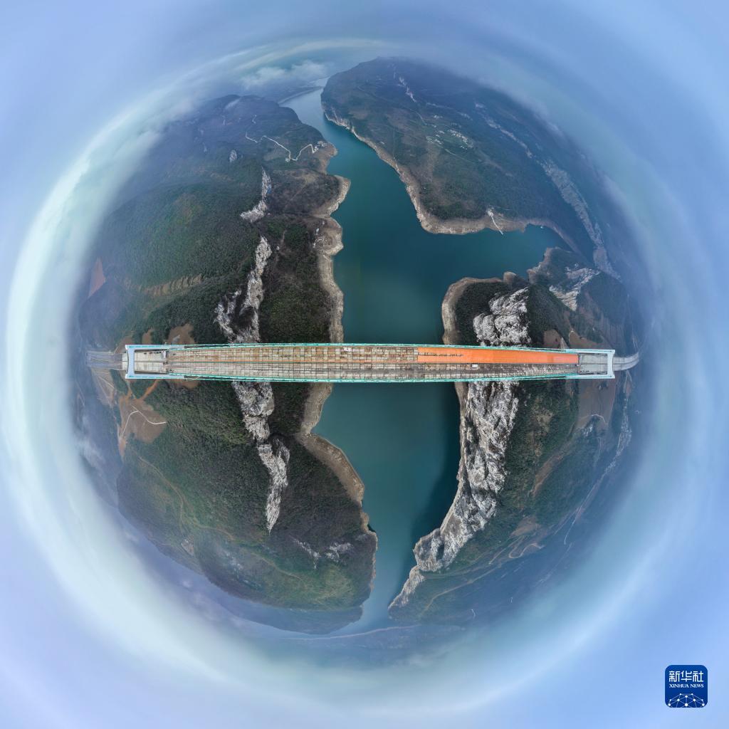 2月3日拍攝的貴州金烽烏江大橋(無(wú)人機(jī)照片)。