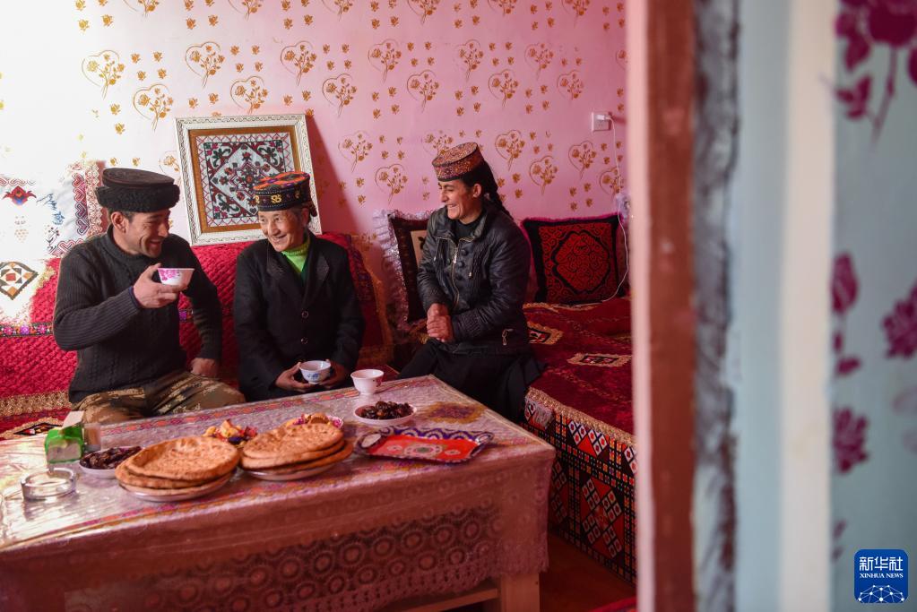 新疆塔什庫爾干塔吉克自治縣塔提庫力易地扶貧搬遷安置點,村民在家中休息聊天(2022年12月20日攝)。新華社記者 丁磊 攝